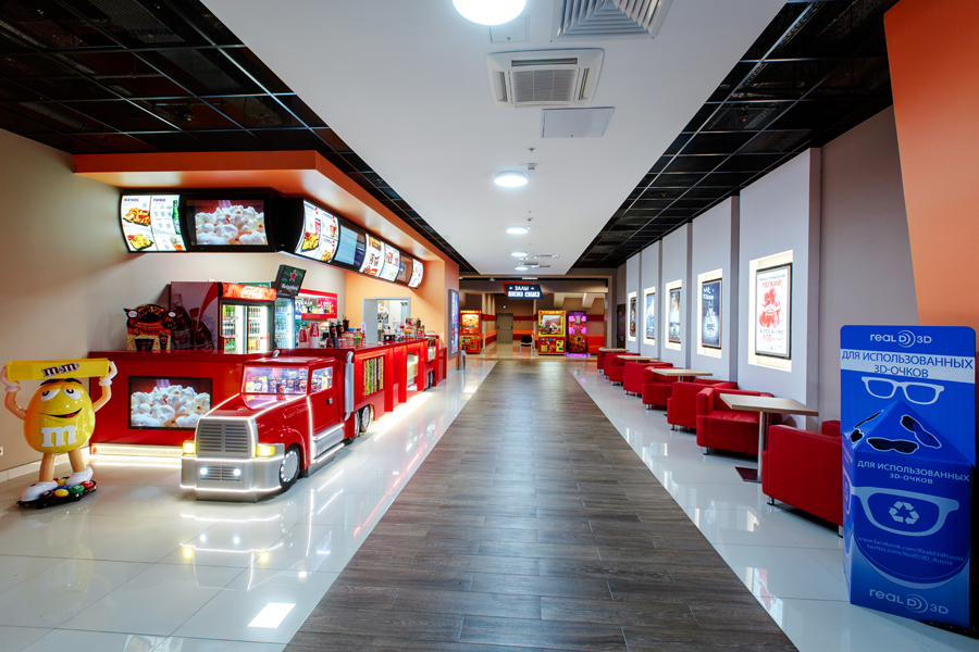 В зоне ожидания кинотеатра вас ждут мягкие диваны и стулья, а также удобное бистро, где можно скоротать время до сеанса. Приглушённый свет и сверкающие плазменные телевизоры подарят неожиданное ощущение спокойствия и роскоши, словно вы находитесь во дворце. Изображения на стене подскажут вам, какой фильм выбрать, а отзывчивые бармены расскажут какой напиток является наиболее популярным в их баре и какой попкорн самый вкусный.